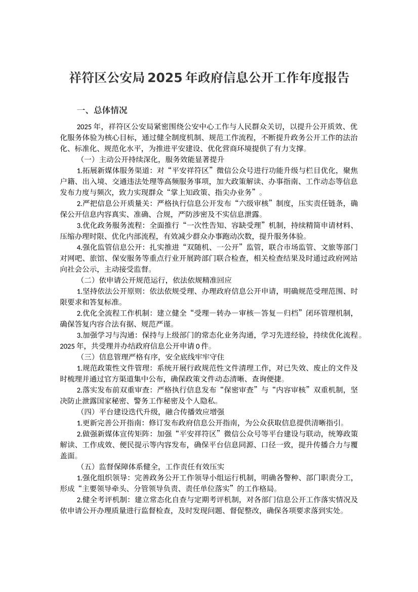 祥符区公安局2025年政府信息公开工作年度报告