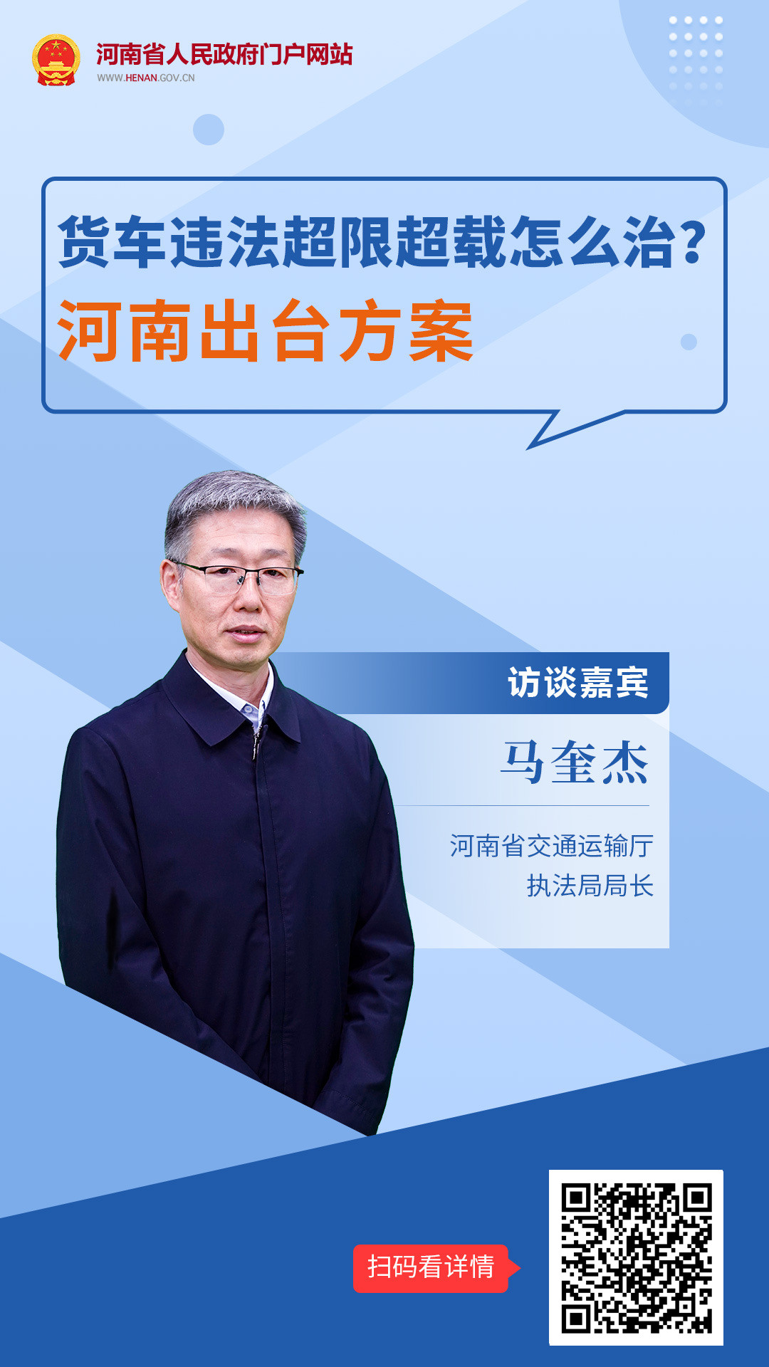 道路交通安全关乎经济发展命脉,连着千家万户平安。近日,河南省政府办公厅印发《河南省加强货车违法超限超载联合治理工作方案》(以下简称《方案》),《方案》出台的背景是什么?有哪些核心举措?12月9日,河南省交通运输厅执法局局长马奎杰做客河南政府网《在线访谈》节目,对上述问题进行详细解答。