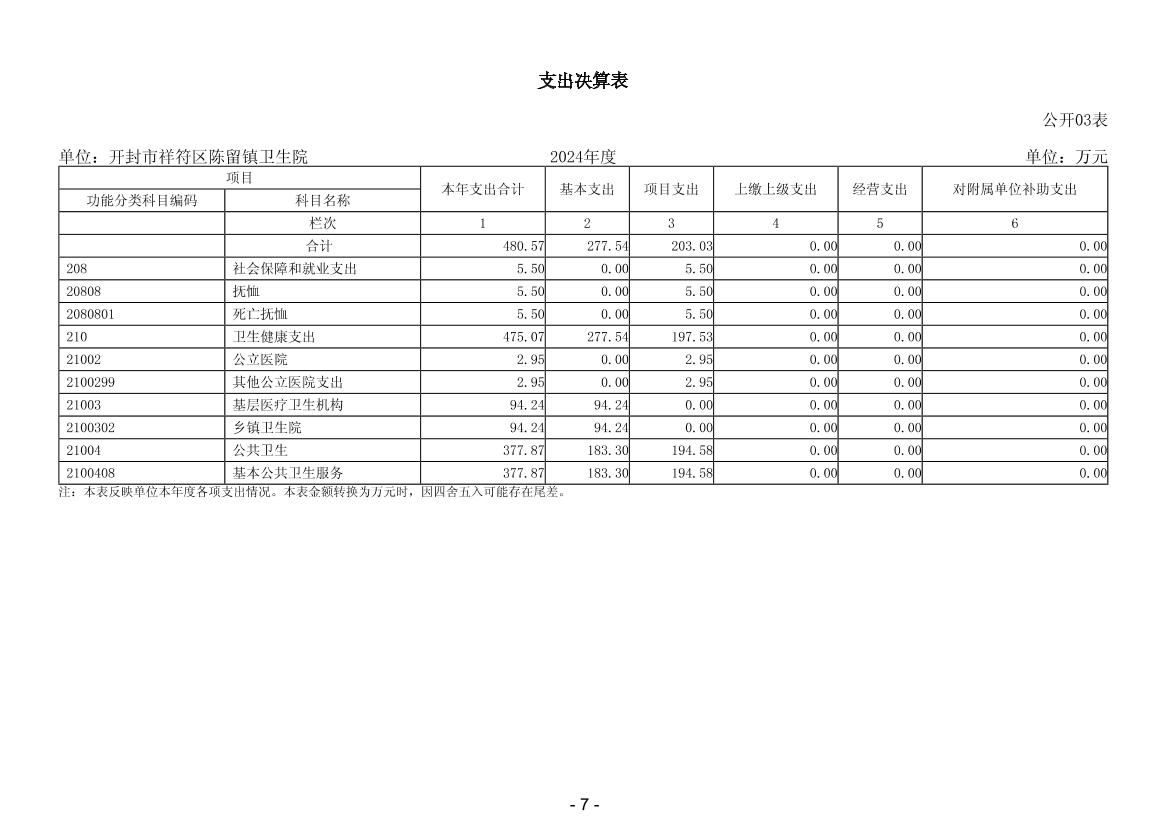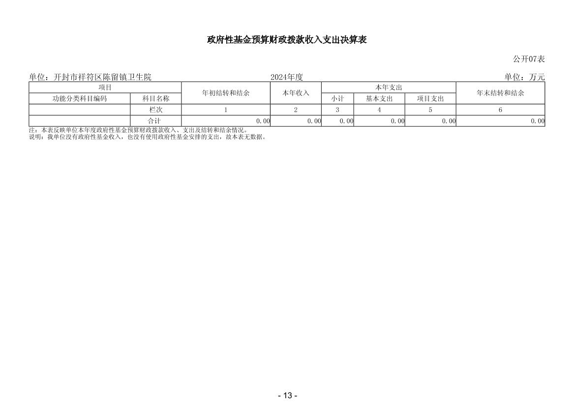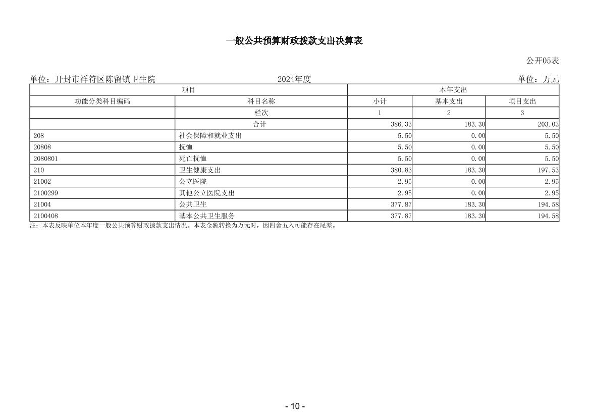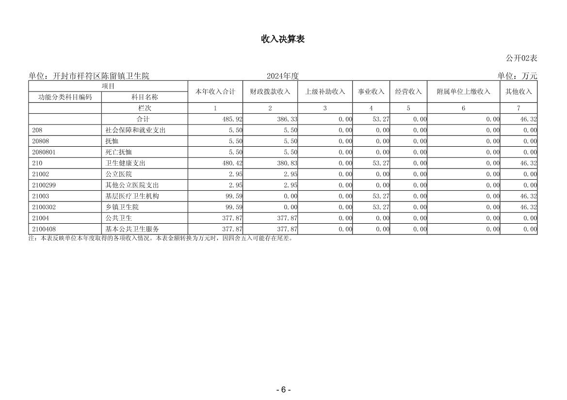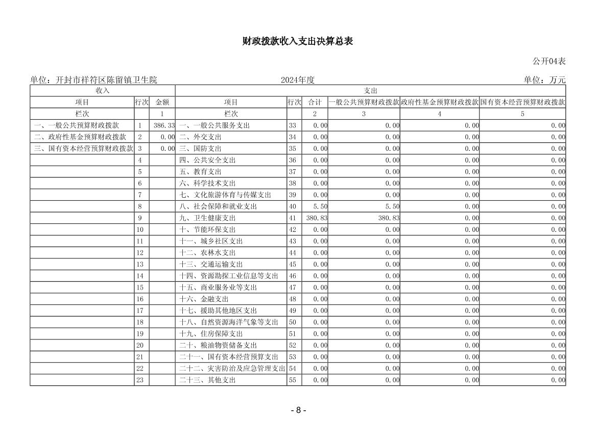 2024年度开封市祥符区陈留镇卫生院单位决算