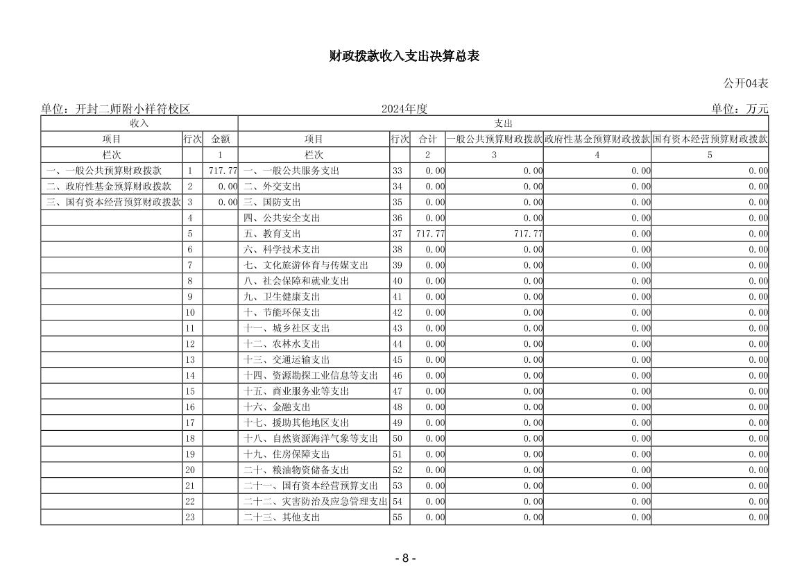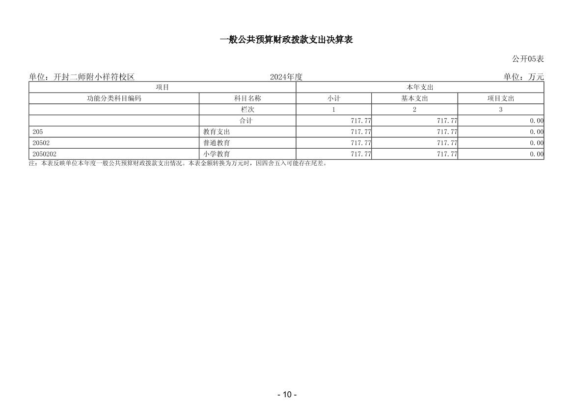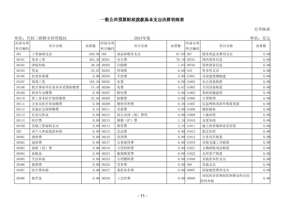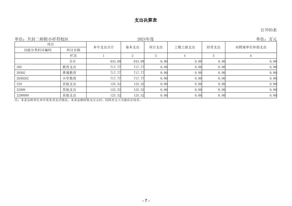 2024年度开封二师附小祥符校区单位决算