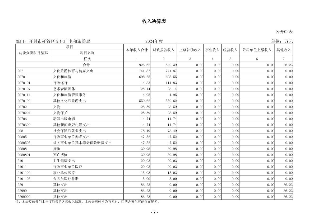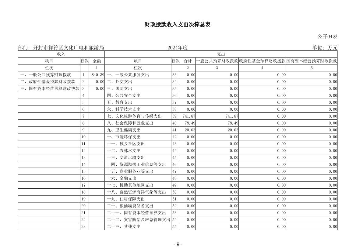 2024年度开封市祥符区文化广电和旅游局部门决算