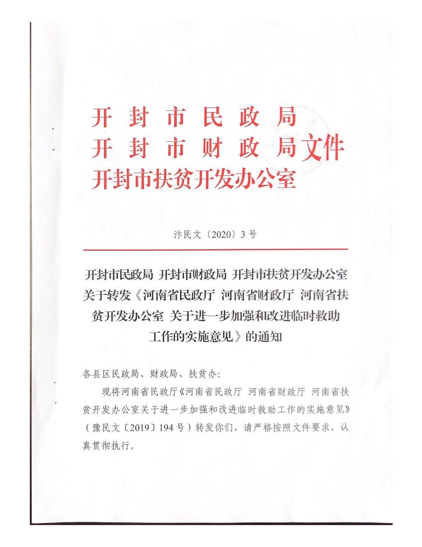 开封市民政局 开封市财政局 开封市扶贫开发办公室关于转发《河南省民政厅 河南省财政厅 河南省扶贫开发办公室关于进一步加强和改进临时救助工作的实施意见》的通知