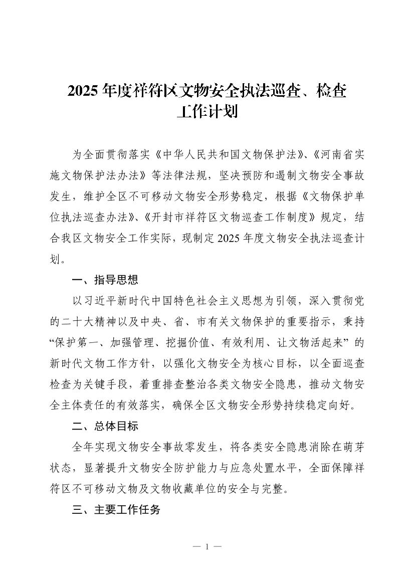 关于印发《2025年度祥符区文物安全执法巡查、检查工作计划》的通知