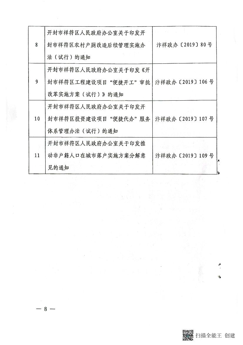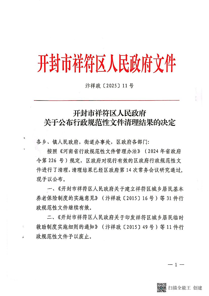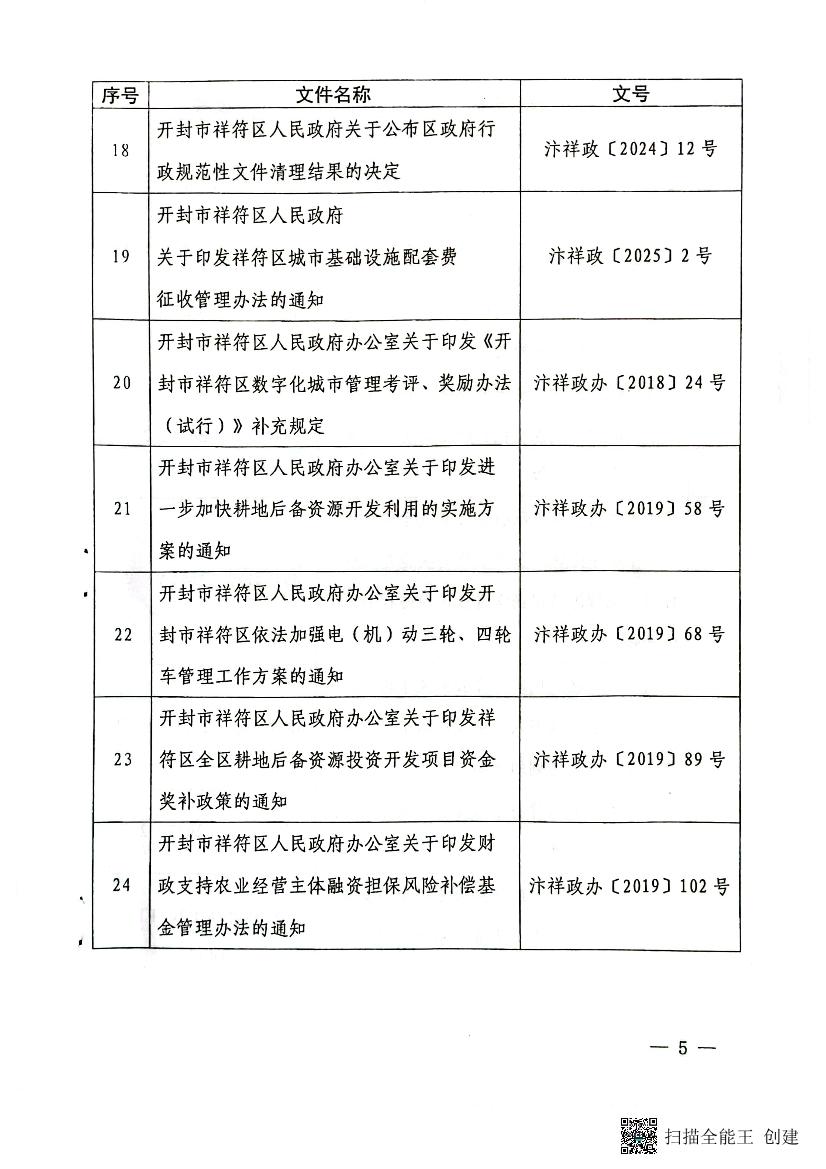 《汴祥政〔2025〕11号开封市祥符区人民政府关于公布区政府行政规范性文件清理结果的决定》