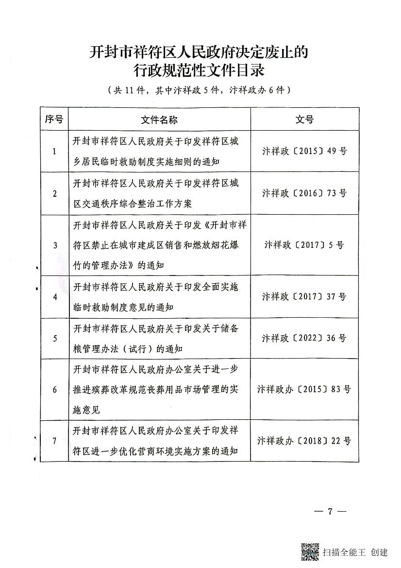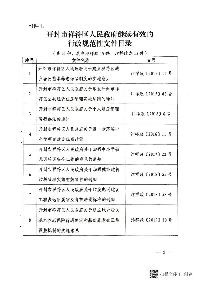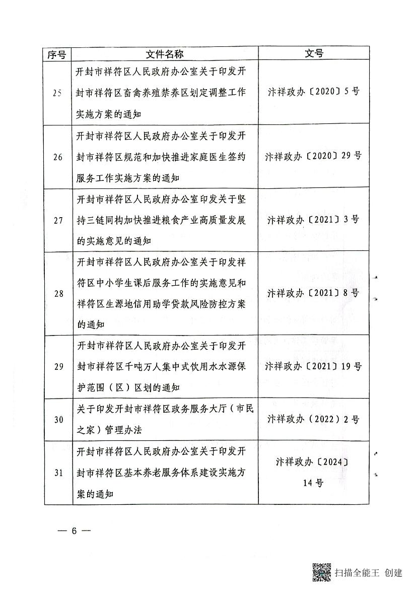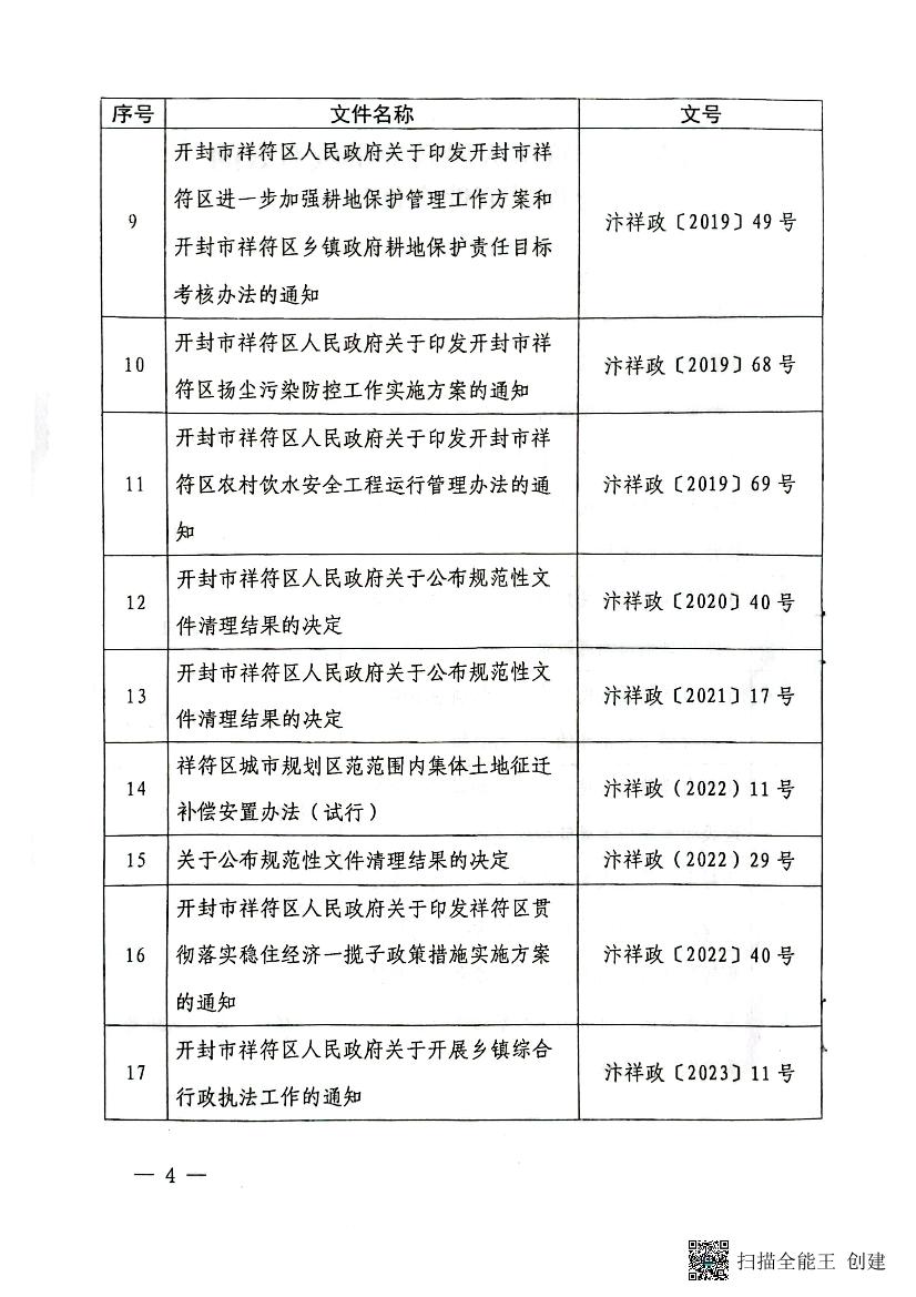 《汴祥政〔2025〕11号开封市祥符区人民政府关于公布区政府行政规范性文件清理结果的决定》