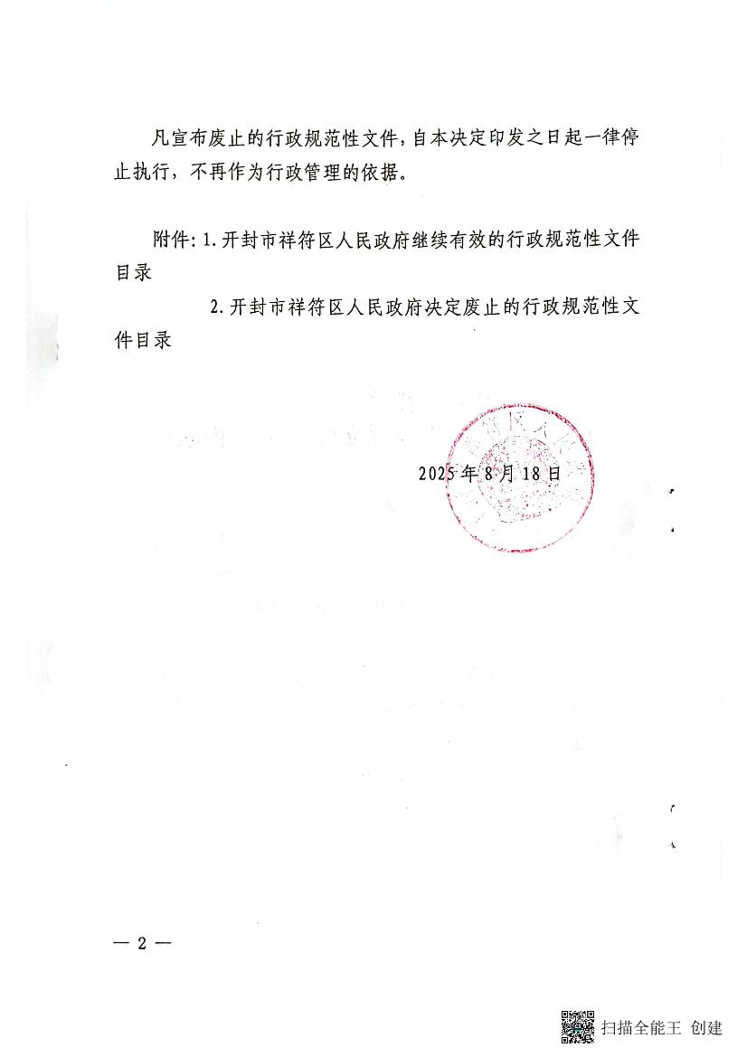 汴祥政〔2025〕11号 开封市祥符区人民政府关于公布行政规范性文件清理结果的决定