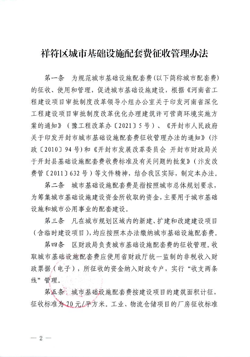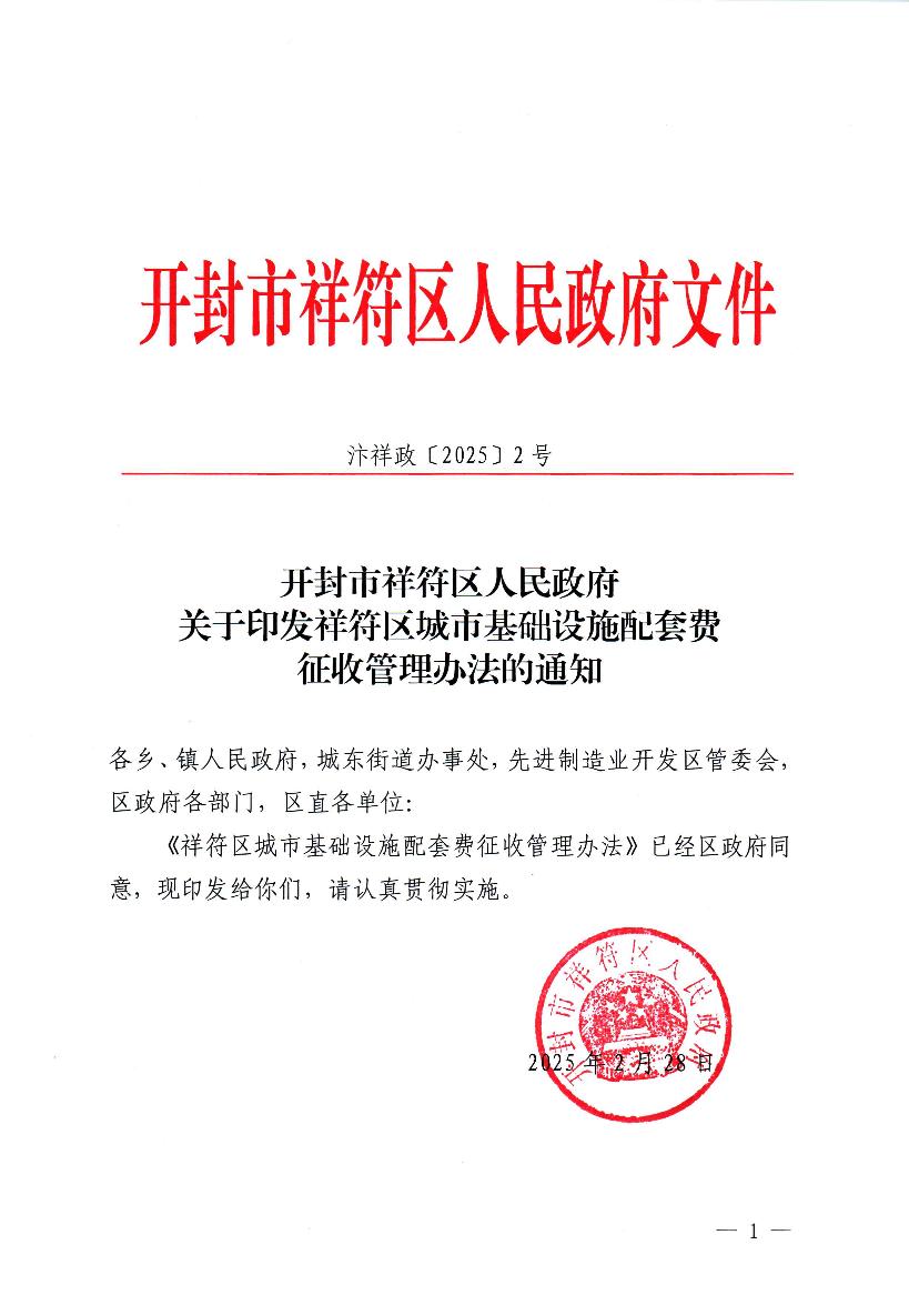 《汴祥政〔2025〕2号》开封市祥符区人民政府关于印发祥符区城市基础设施配套费征收管理办法的通知
