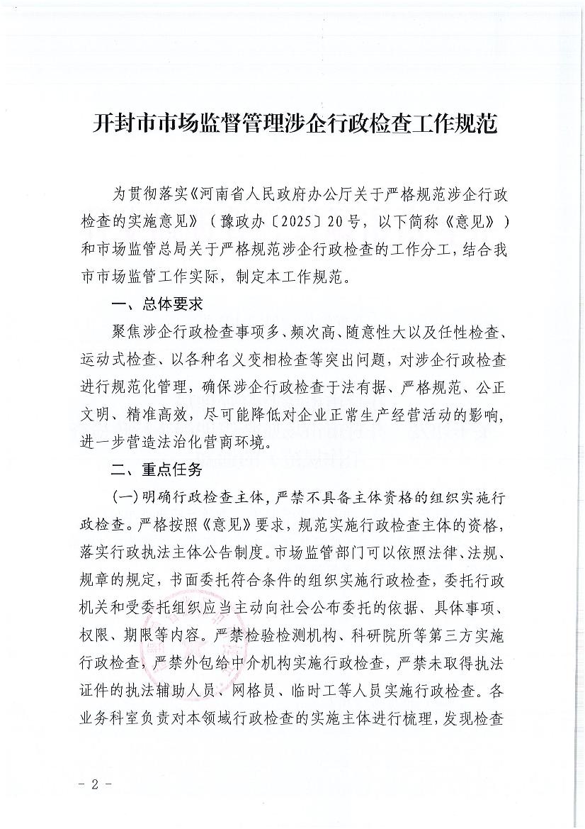 祥符区市场监管局行政检查标准