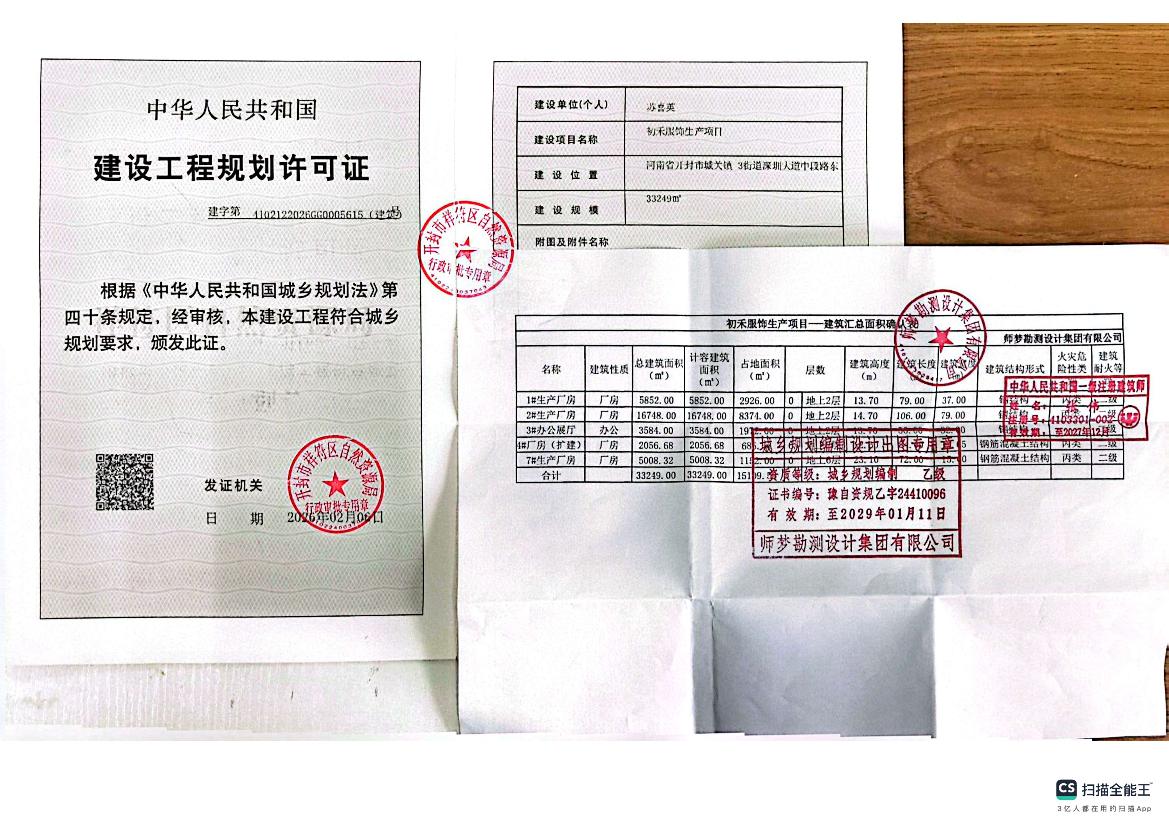初禾服饰生产项目批后公告